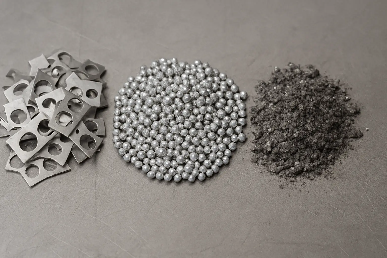 - Stanzabfälle: Reste aus der Metallverarbeitung, häufig mit Silber-, Gold-, Platin- oder Palladiumanteilen.